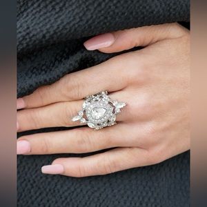 NWT - White Rhinestone ring. Featuring classic round and regal marquise cuts, dainty white rhinestones delicately join into a stellar frame. Encrusted in glassy white rhinestones, an oversized teardrop gem sits atop the center of a sparkly backdrop for a jaw-dropping finish. Features a stretchy band for a flexible fit.