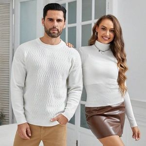 White Rib Knit Turtleneck Sweater Top Long Sleeve