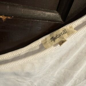 Ribbed knit tank with thin straps. Neutral cream tone. Simple, easy-to-layer style.