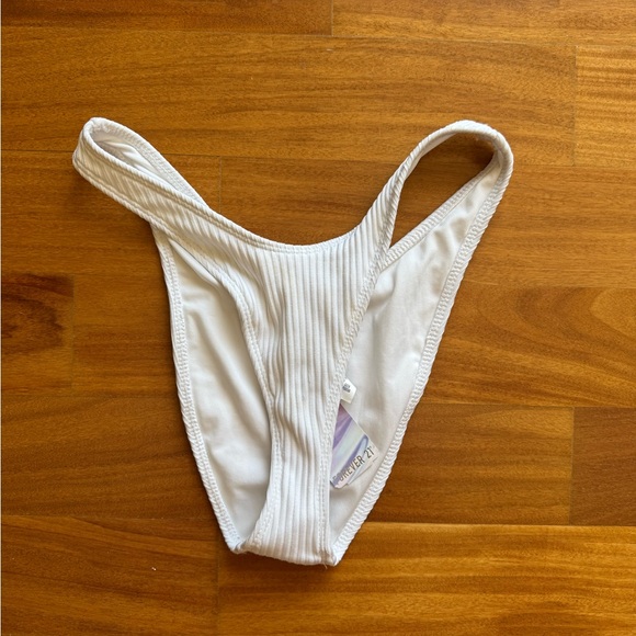 Stylish white ribbed bikini bottom. Perfect for beach days. It has never been worn. It is more v-shaped bikini bottom. It has no bikini top it comes with.