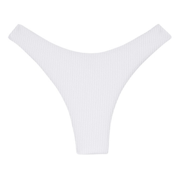 Chic and stylish white ribbed bikini bottom perfect for a day at the beach. Enjoy comfort and elegance with this essential swimwear piece.