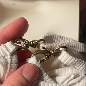 like new EXCEPT for the wear to the hardware (clips/clasp things on the bikini top) i only wore it once too was too small and have washed in hot and bleached it so it stayed clean and bright white.