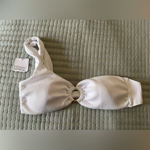 Elevate your swimwear collection with this chic white ribbed bikini top. Perfect for a stylish day at the beach or pool.
