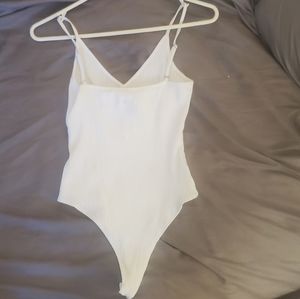 White ribbed bodysuit perfect for spring or summer! Has a button on the bottom. I paired it with a denim skirt for a country concert. Worn once. US size 6.