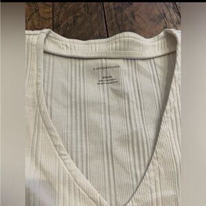 Elevate your style with this chic white ribbed button-down top. Perfect for any occasion, it offers a flattering fit and timeless appeal.