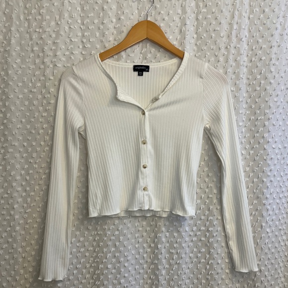 Casual and flattering, this ribbed button-down top is form fitting and slightly cropped. Featuring long sleeves and a slim, stretchy fit which is perfect for layering.