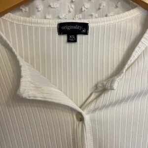 White Ribbed Button-Down Top