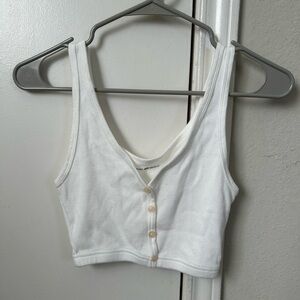 Stylish white ribbed tank top with button-front detail. Perfect for casual wear. Never worn