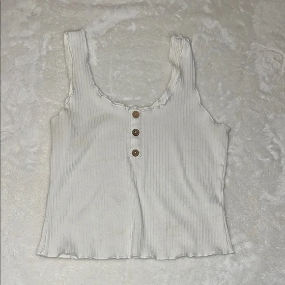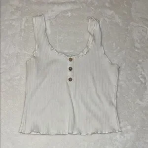 Elevate your style with this chic white ribbed top. Featuring a button-front design, it's perfect for any casual outing.