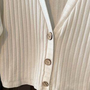 Stylish white ribbed cardigan with button-up front. Perfect for layering. Bought from boutique