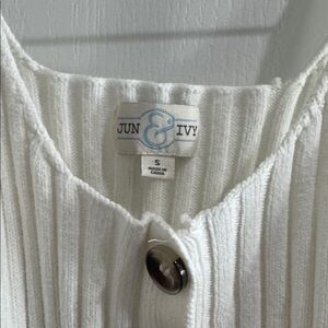 Stylish white ribbed tank top with button-up front. Perfect for casual wear.