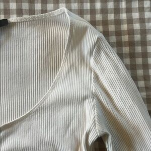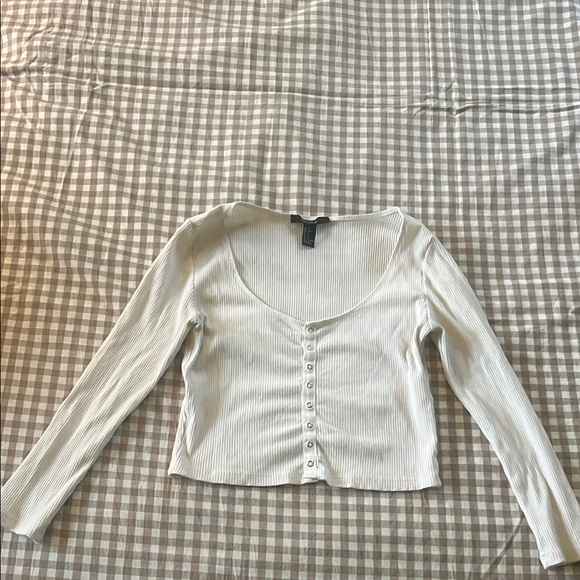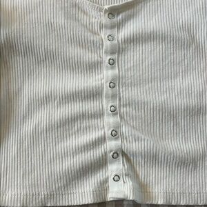 White Ribbed Button-Up Top