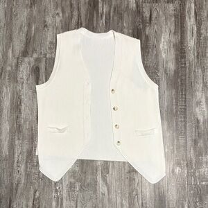 White Ribbed Button-Up Vest