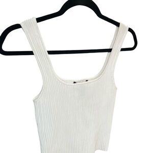 White Ribbed Crop Tank Top