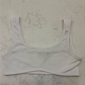 Stylish white ribbed crop top. Perfect for layering or wearing alone.