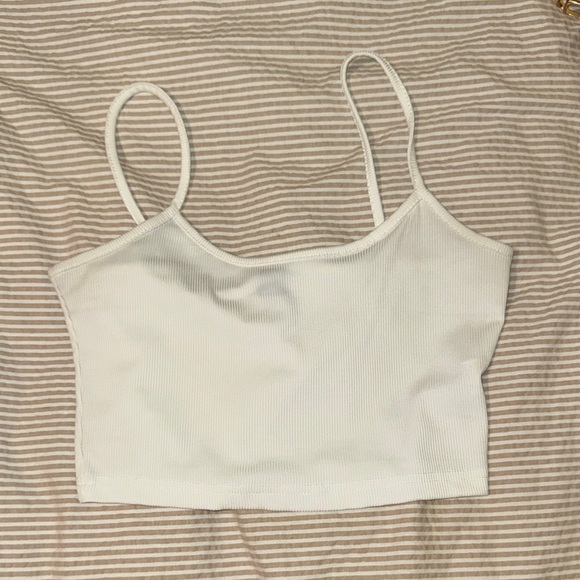 Elevate your style with this chic white ribbed crop top. Perfect for any casual outing.