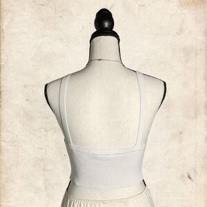 white ribbed deep v neck tank crop top