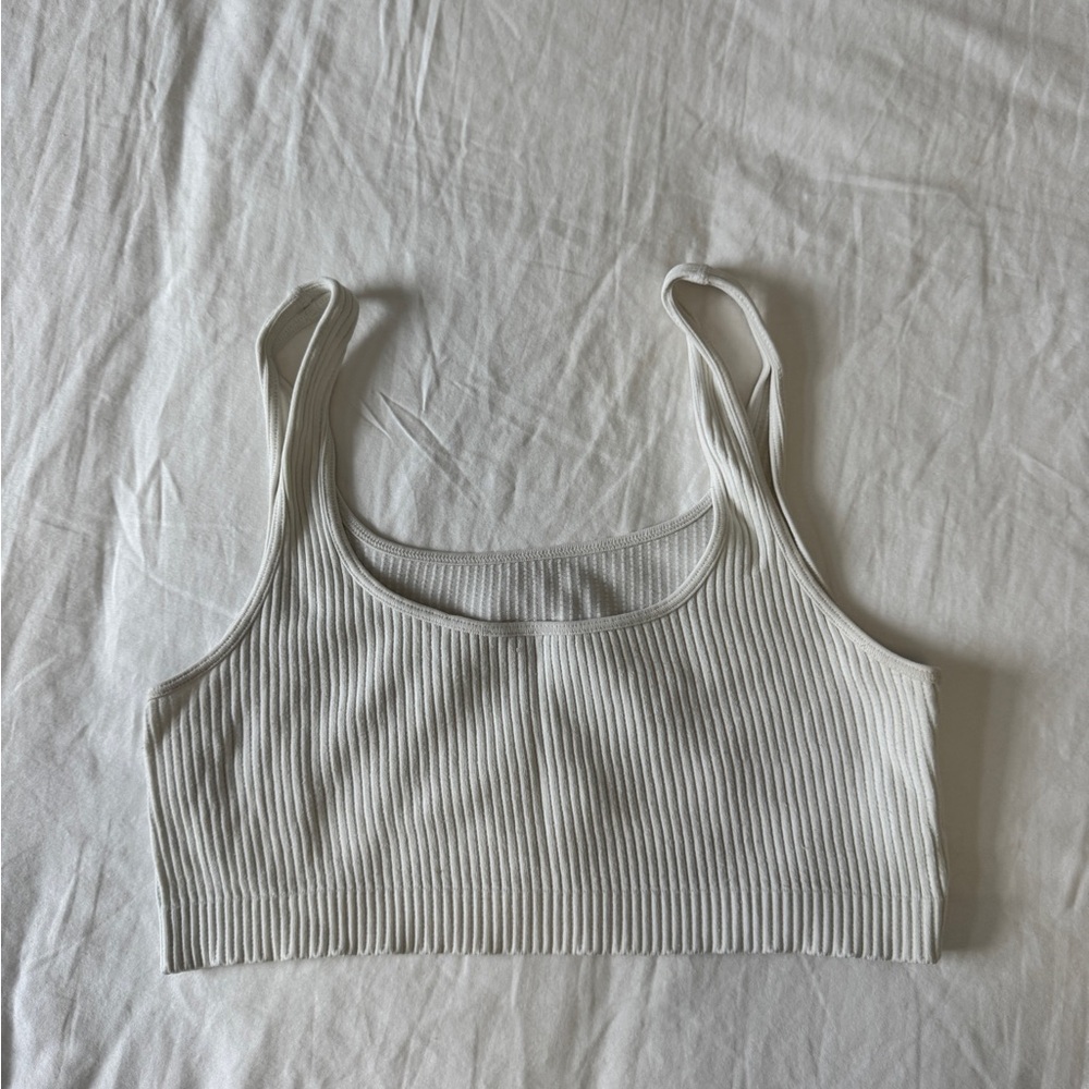 Elevate your style with this chic white ribbed crop top. Perfect for any casual outing.
