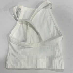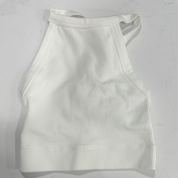 Elevate your style with this chic white ribbed crop top. Perfect for any occasion, it offers a sleek and modern look.