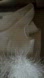 Elegant white ribbed dress featuring a stylish feather hem. Perfect for special occasions.