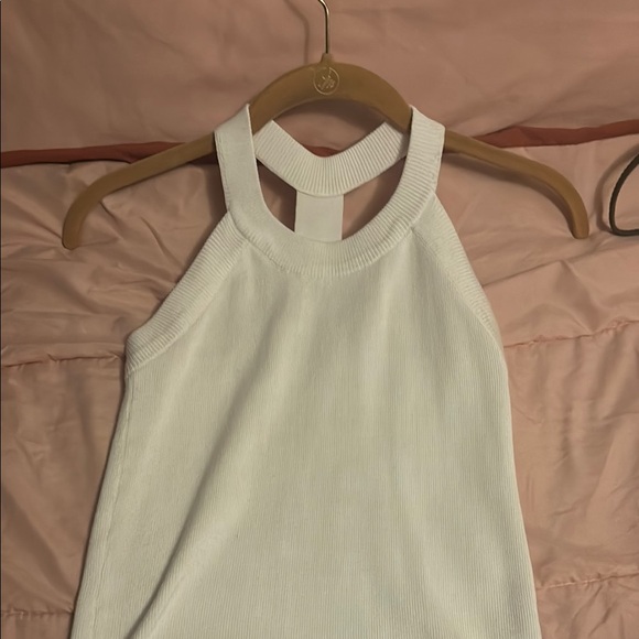 Elevate your style with this chic white ribbed halter top. Perfect for any occasion, this top offers both comfort and elegance.