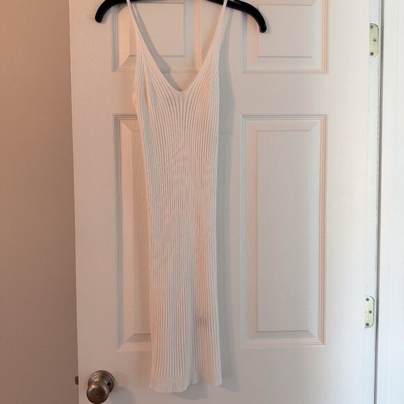 White Ribbed Knit Midi Dress
