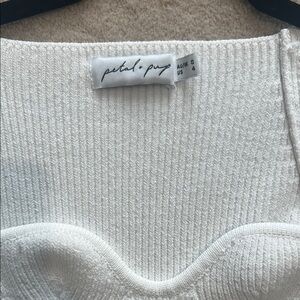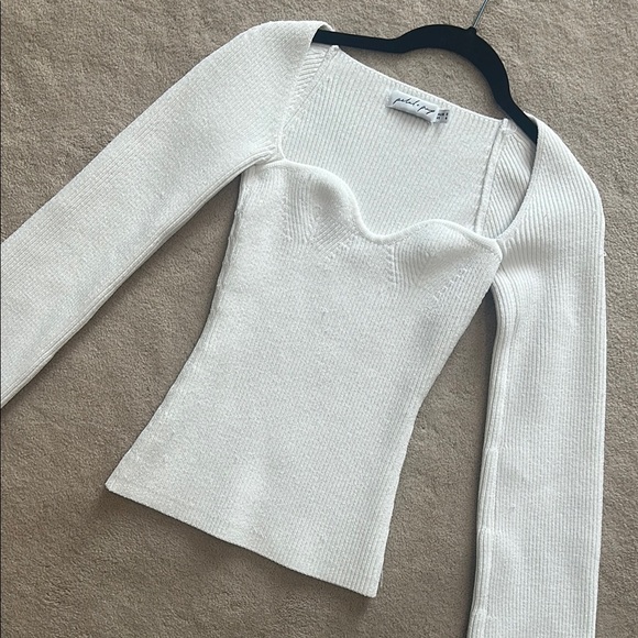 Elevate your wardrobe with this elegant white ribbed knit top. Perfect for any occasion, it offers a flattering fit and timeless style.