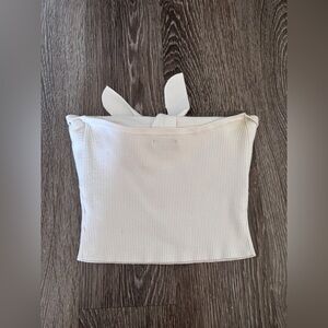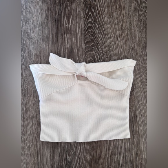 White/off-white ribbed knit cropped tube top with an adjustable tie in the front. Brand: Lottie Moss Size: small