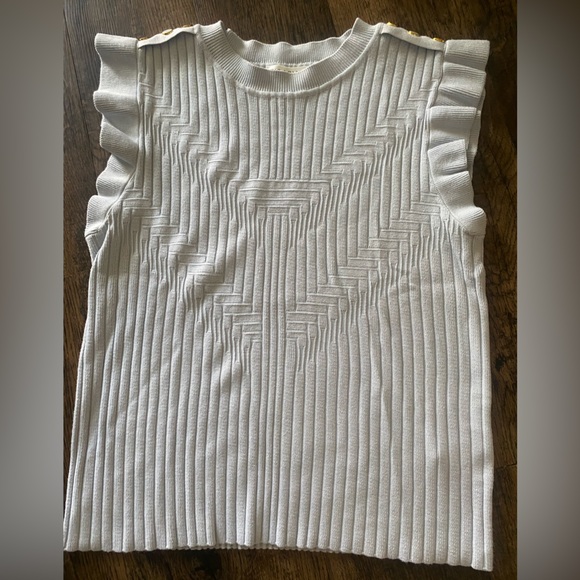 Stylish white ribbed knit top with unique texture. Perfect for casual wear.