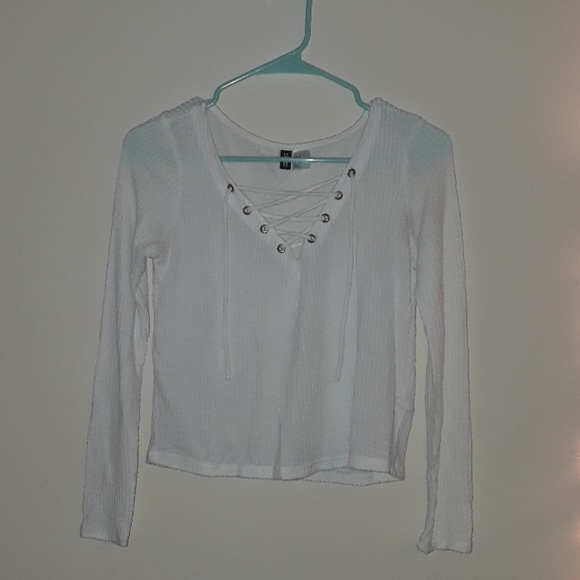 White lace up crop top from H&M. It is in good condition and it is a little see through. It's tight on the arms so it could fit smaller than XS. Feel free to make an offer.
