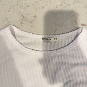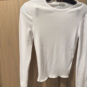 White ribbed long sleeve top. Size XS. Cotton On Brand. Scallop trim.