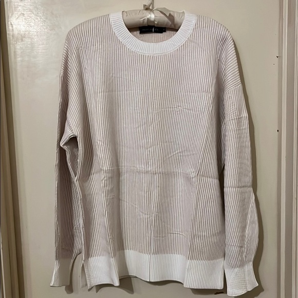 Stay cozy and stylish with this white ribbed sweater. Perfect for any occasion, this sweater offers comfort and a classic look.