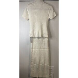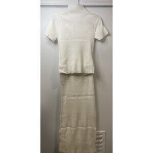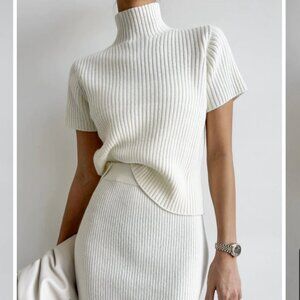 White Ribbed Mock Neck Two Piece Knit Midi Dress