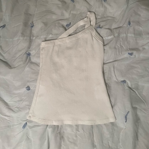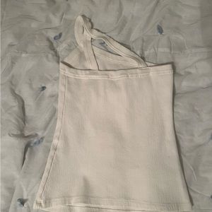 White Ribbed One Shoulder Top