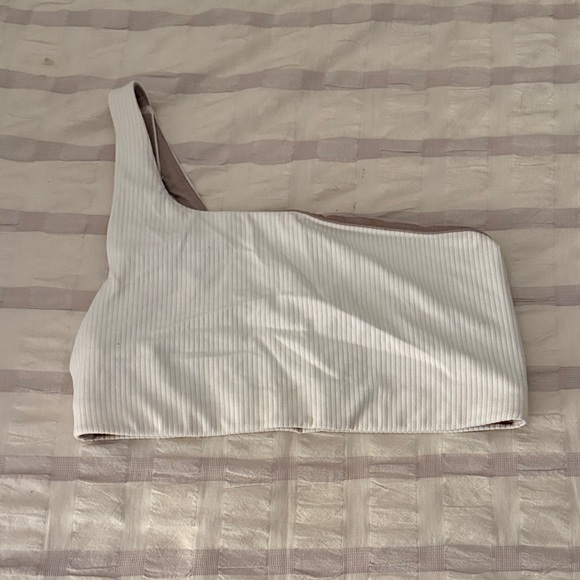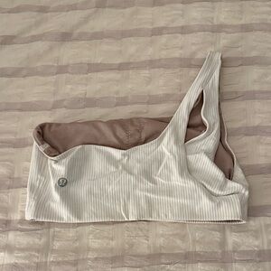 Stylish white ribbed one-shoulder top. Perfect for casual outings. Size 6 women’s Lululemon bra