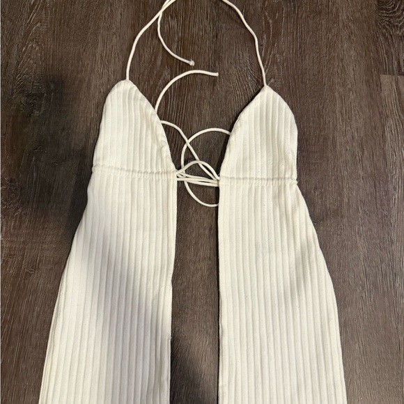 Edikted white ribbed top with tie open back