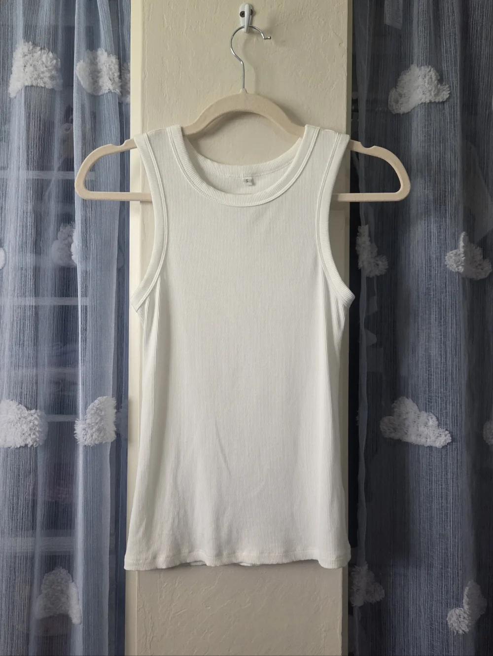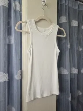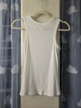 Classic white sleeveless tank top with a ribbed texture. Soft, breathable fabric for all-day comfort. Versatile wardrobe staple that layers easily or wears solo. Clean white color offers a fresh, minimalist look.