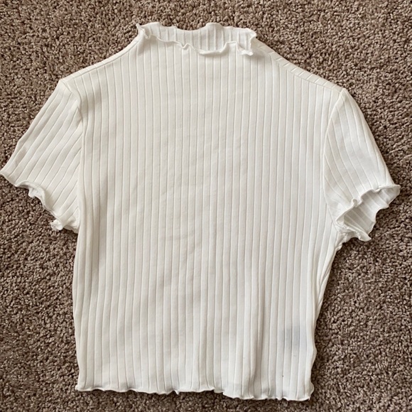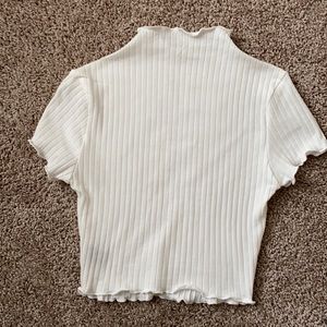 White ruffle-edge and ribbed mock neck top. Fits like a small/extra small. Like new.