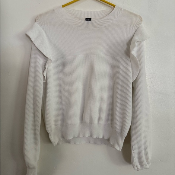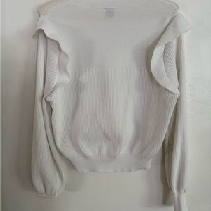 White Ribbed, Ruffled Sweater, Size XL