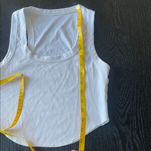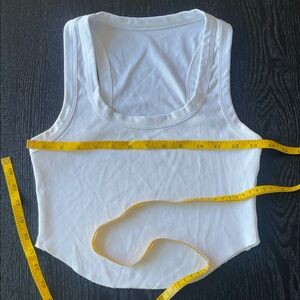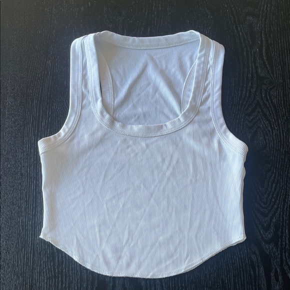 Classic white ribbed tank with a scoop neckline. Soft, stretch fabric for comfortable all-day wear. Versatile white color pairs easily with any outfit. Simple, modern style for casual or layered looks.