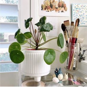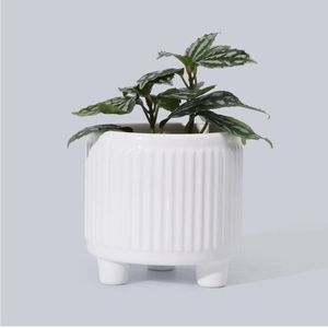 White Ribbed Small Planter Pot with Drainage Hole and Round Feet