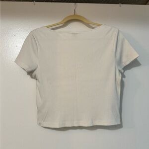 Elevate your wardrobe with this chic white ribbed top. Featuring a stylish square neck, it's perfect for any occasion. No noted damage or stains.