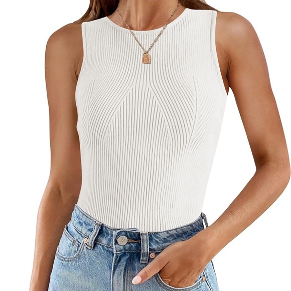 White Ribbed Sweater Tank Top