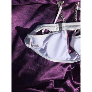 White Ribbed Swim Top Bralette With Chain Straps & Back Clasp Closure*34B
