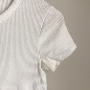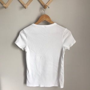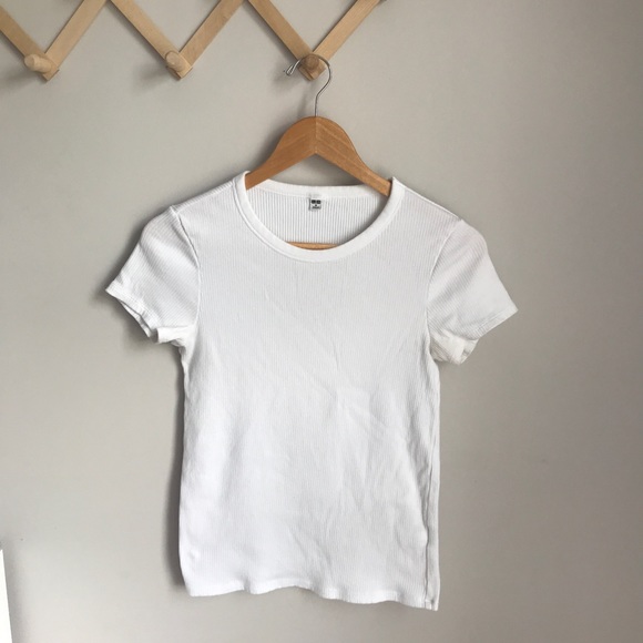 White ribbed t-shirt perfect for tucking in with high waisted jeans, good used condition.