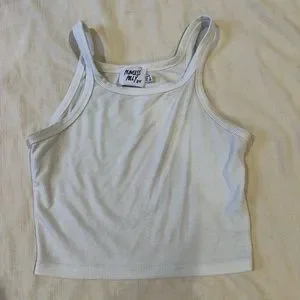 This stylish white ribbed tank top offers a comfortable fit and versatile style. Perfect for layering or wearing on its own.