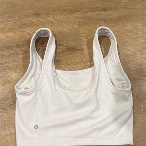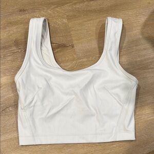 Stylish white ribbed tank top with a scoop neckline. Perfect for casual wear.