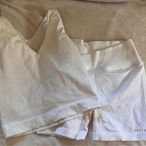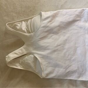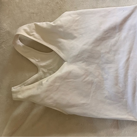 Stylish white ribbed tank top. Athletic material, can be sold as a matching set with the shorts.