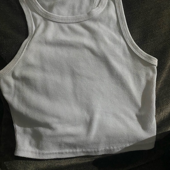 Elevate your wardrobe with this classic white ribbed tank top. Perfect for layering or wearing on its own, this versatile piece is a must-have for any season. Good condition.