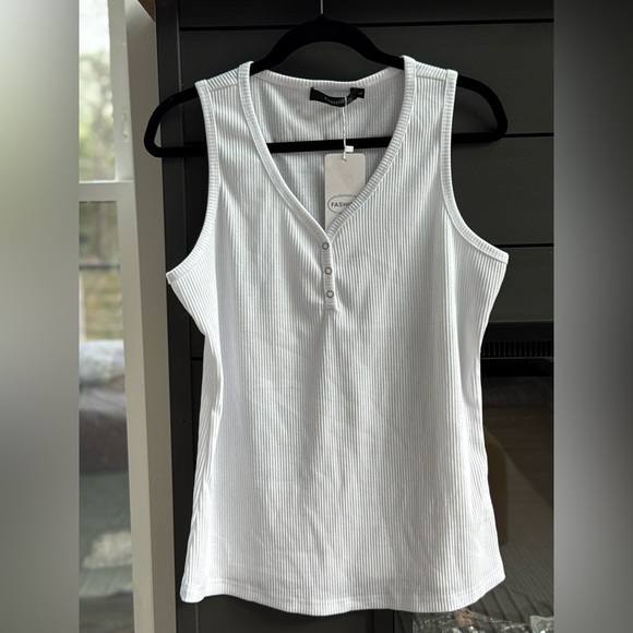 Elevate your wardrobe with this classic white ribbed tank top. Perfect for layering or wearing on its own, this versatile piece is a must-have for any season.